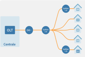 Nelle reti FTTH il punto di origine del segnale ottico è l’OLT (Optical Line Terminal), situato nella centrale dell’operatore. Da qui il segnale viene inviato sulla rete di distribuzione.