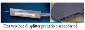 Gli splitter ottici sono elementi passivi e si occupano di suddividere il segnale ottico in molteplici rami. Entrambe le tipologie di splitter sono caratterizzate da una fibra (o due) in ingresso che si divide in 4/8/16 in uscita. La conformazione dipende dall’architettura scelta dall’operatore e dal periodo storico in cui la rete in questione è stata realizzata. Fatto sta che la tecnologia, definita GPON, rie